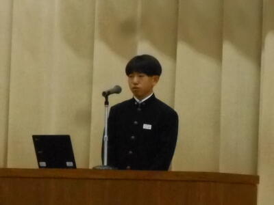 学校運営協議会長の菊地様から講評をいただきました。これからも地域と学校がつながってこの地域、私たちのふるさとを盛り上げていければ最高ですね。年間を通して地域のイベントはたくさんあります。親中生の皆さん、これからも様々な催し物にボランティアで協力し、地域貢献・社会参画をしていきましょう!