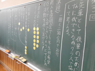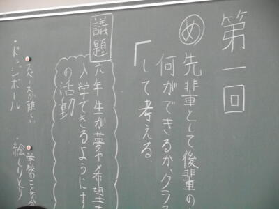 今日のテーマは、「新入生説明会で小学6年生が夢や希望をもって入学できる活動を作りあげよう」。