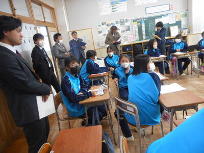 様々な意見を聞いて自分の意見と対比させ、自分としての意思決定をする。そしてその意見をクラスで共有しながら集団の意思決定につなげる。この過程こそ特別活動が目指すものです。積極的な1年生の姿に、訪問者の先生方からも賞賛の声を多くいただきました!各教科の授業も大切ですが、「特別活動」も大切です。この学びも「自立した学習者」の育成につながっています。再来週も英語の授業公開が2年生で行われます。