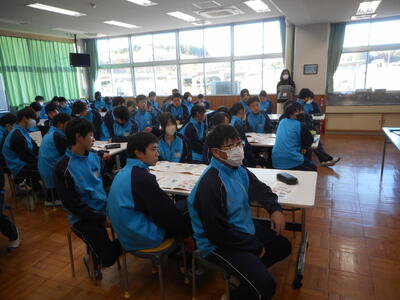 今日はどちらのクラスも同時展開。司会者の呼びかけに多くの意見が飛び出しました。