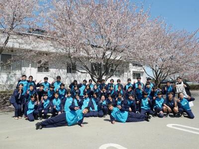 明日は入学式。学校の桜は満開を過ぎましたが、まだまだ見頃です。桜も新入生を待ってます!