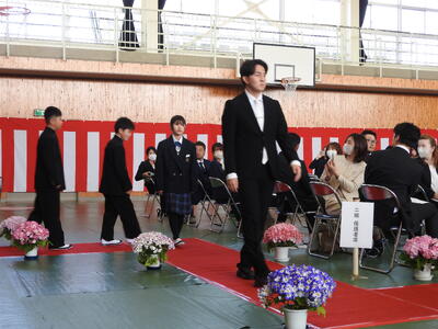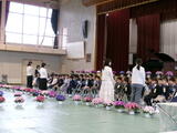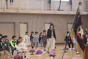緊張の中、体育館へ。担任の呼名に対して「はいっ」と元気な返事が聞こえます。