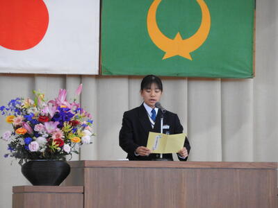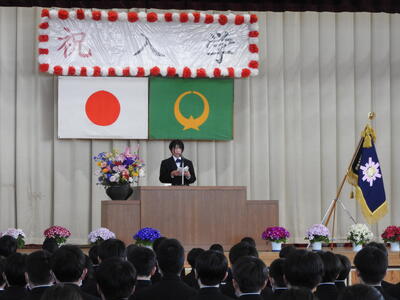生徒代表での「歓迎のことば」と「誓いのことば」。堂々としたあいさつ、よく頑張りました。