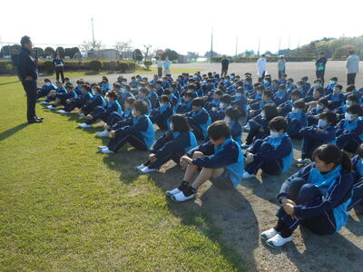 今日は2分半ほどで全員校庭へ避難完了しました。