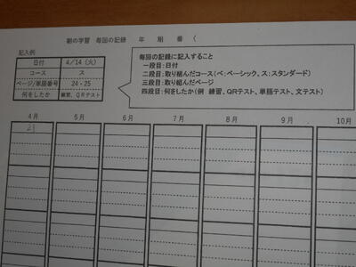 本校では、朝の学習として「英語の学習」に取り組んでいます。1時間目が始まる前の15分間が貴重な学びとなっています。主に英単語の学習ですが、計画表にしたがって学習内容を選択しながら進めます。この15分の蓄積が大きな力となることを期待します!