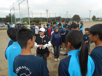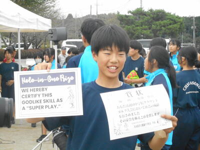 親中生も各チームの指導者のアドバイスを受けながら楽しくプレー。あちこちで楽しそうな声が聞こえてきました。ホールインワンも多数出て、多いに盛り上がりました。