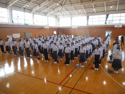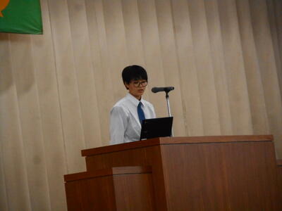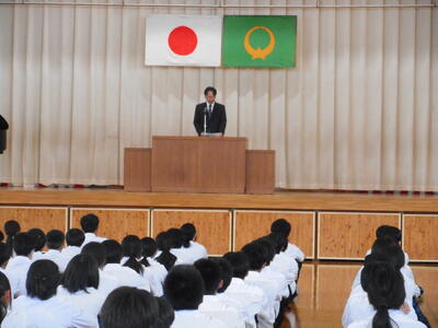 そんな今日は前期終業式。4月からの半年間を振り返り、学校スローガンである「三兎を追って自立・敬愛・挑戦する」をどれだけ達成できたかを考えました。