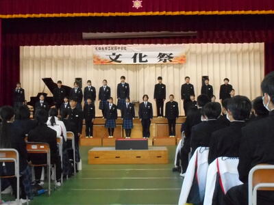 今日は気温は低かったですが、晴天の下で文化祭が開催されました。御案内の通り、感染症の流行で1ヶ月以上も延期となり、生徒たちは中間テストや確認テストを経て、再び今日に向けて準備を進めてきました。経験したことのないスケジュールでしたが、みんな体調に気をつけながら頑張りました。