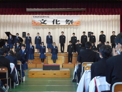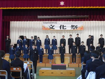 楽しい時間もあっという間。保護者の皆様、お楽しみいただけたでしょうか。寒い中ご来校くださり、生徒たちの活躍を見守っていただき、ありがとうございました。最後、3年生が1,2年生に向けてのメッセージを、そして、それを受けて2年生の代表が素敵なコメントで返すあたり、とても感動しました。バトンは確実に受け継がれましたね。まさに「継承」。