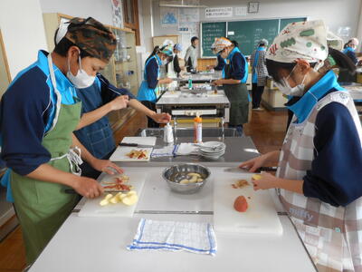 なかなか経験の少ない「包丁」の使い方。この日のために家で練習してきたという生徒も。
