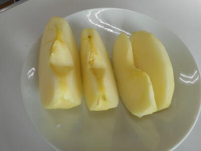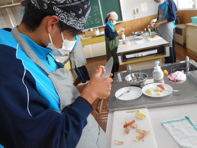 1年生家庭科は「リンゴの皮むき」の実習を行いました。