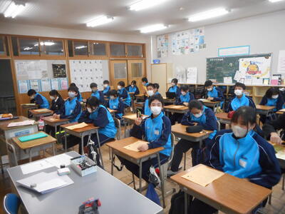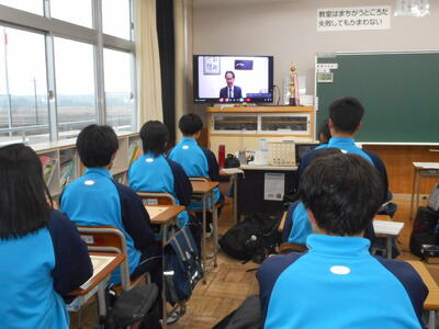 授業を終えて6時間目は冬休み前集会。リモートで実施しました。