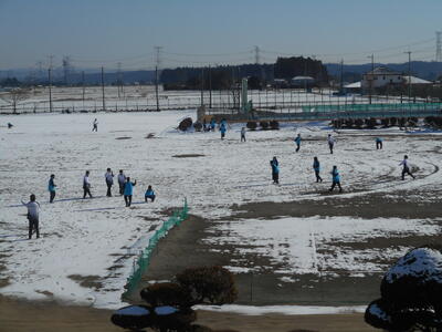 昨日の雪で学校周辺も雪化粧。今朝の気温も-7℃と冷え込みました。