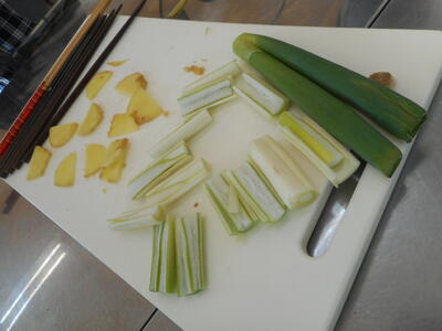落とし蓋もきちんと。調理室にいい香りがしてきました~