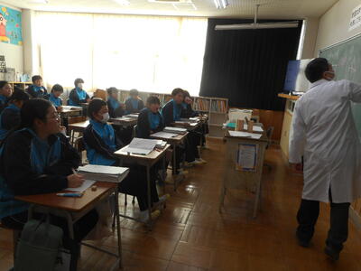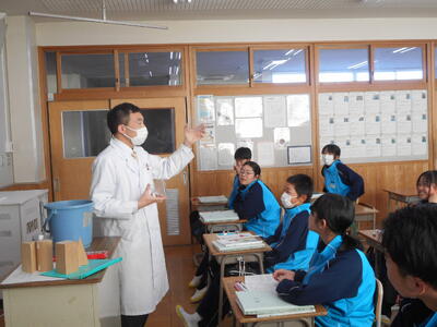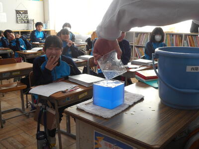 【2組の様子】円錐と角錐、それぞれ実験してみたいという生徒にやってもらいました!