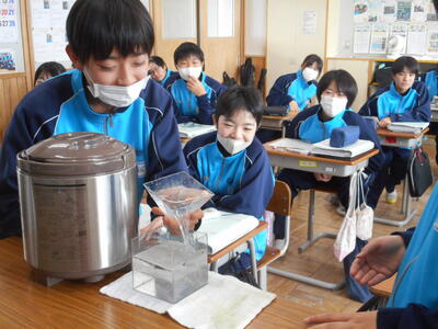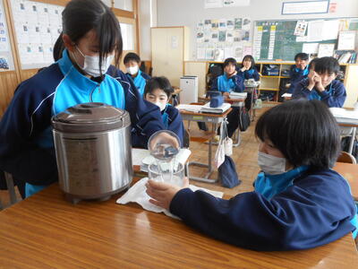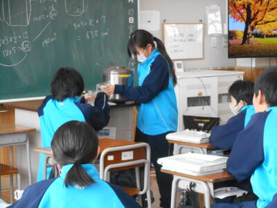 ICTの時代ですが、今日のように時には実物で実感を伴う学習も行っています。このようにして、体積の求め方を考えながら、計算技能に加え、物事を筋道立てて解決する思考力も身につけています。