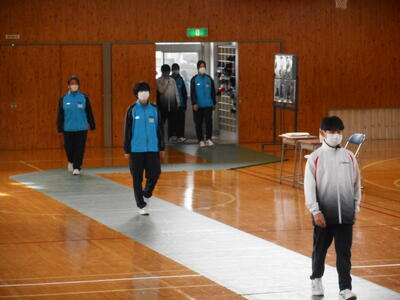 ジャージが小さくなったように見えます。それだけ大きく成長した3年生。BGMが流れる中、緊張した面持ちで動きを確認します。なんだかもううるっときてしまいますね。