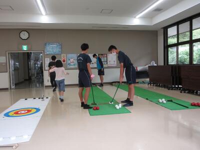 過ごしやすい陽気の昼休み。外ではグランドゴルフの練習。