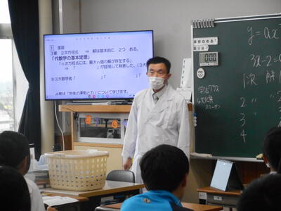 1年生の数学は方程式の計算。一次方程式から比例式に発展した計算を学びました。単に計算処理力を高めるだけでなく、その過程を伝え合うことで表現力も伸ばしていきます。半年間教わった船山先生の授業も残り数回となりました。