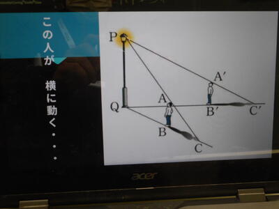 3年生は「相似の利用」。電灯が照らす影の長さを、三角形の相似比をもとに考えました。