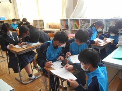 生徒たちは、自ら課題を設定し、冬休みの学習に臨みます。学校で用意した単元別の学習プリント等を持ち帰っています。ワーク等を優先課題にしている場合もあります。それが各自のやるべき課題(宿題)です。