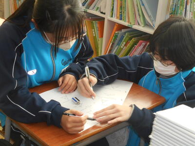 さて、本校生徒会では、毎年年度末に生徒会誌「親窓」を発行しています。現在、編集委員が原稿のとりまとめをしています。今日も昼休みに編集委員会が開かれ、原稿作成の進捗状況を確認していました。