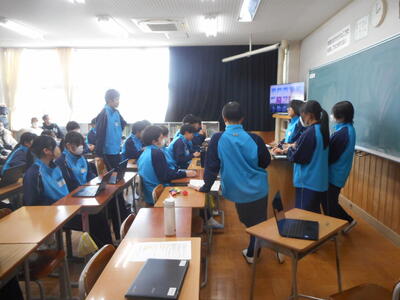 2年生は、職業体験「わくわくチャレンジ」の発表練習をしています。23日の公開日では、発表会を開きます。それぞれの体験で学んだことをスライドにまとめて、発表に向けて準備を進めています。
